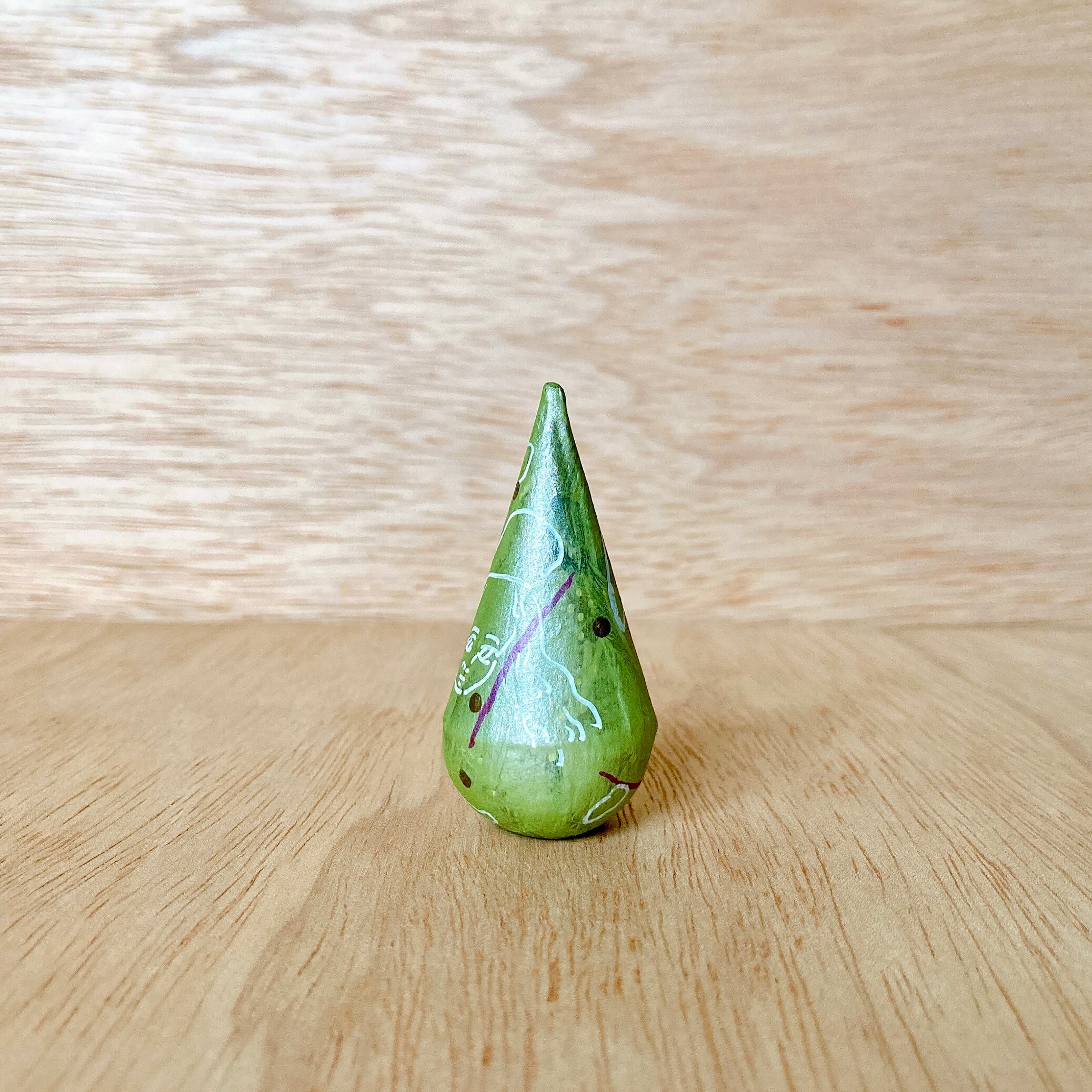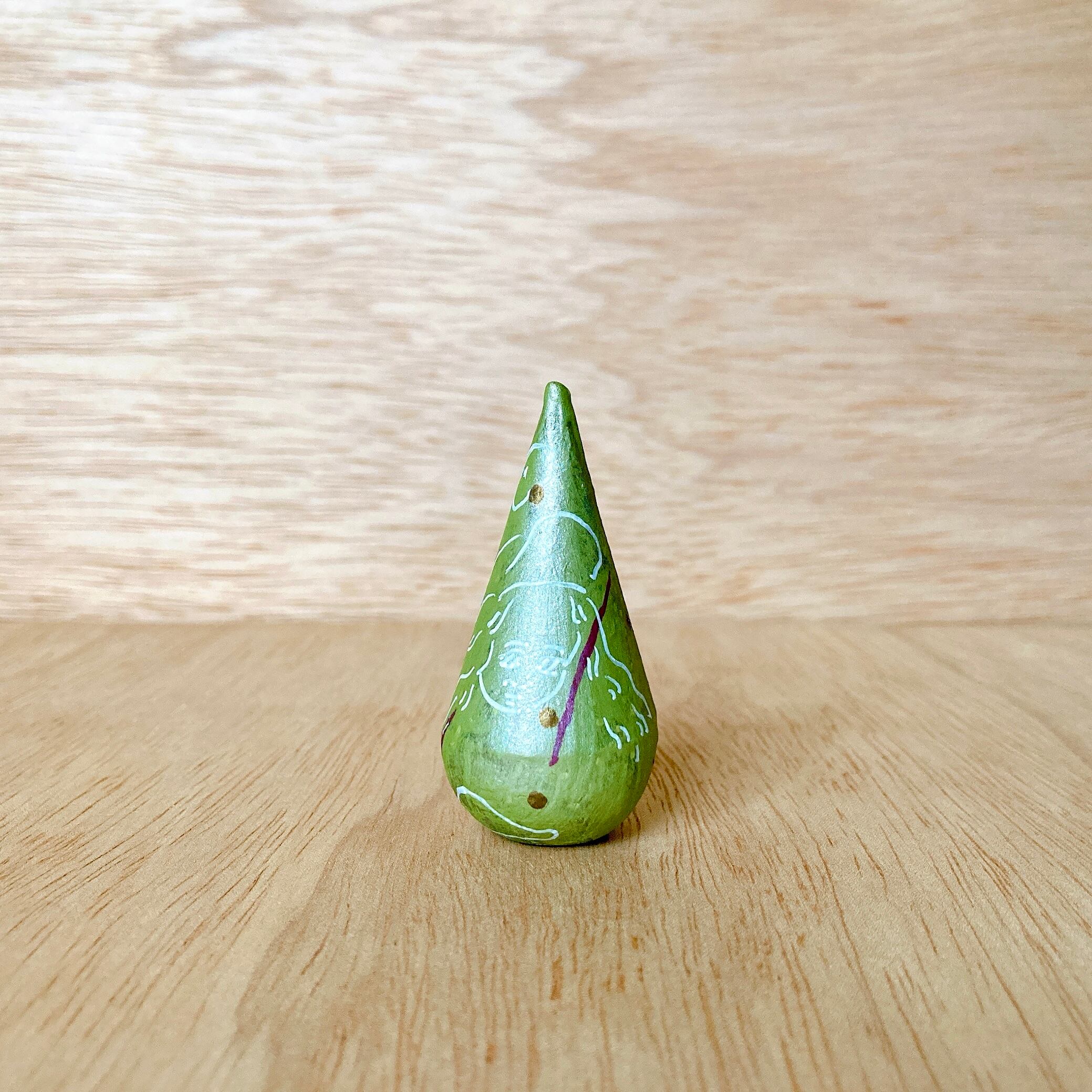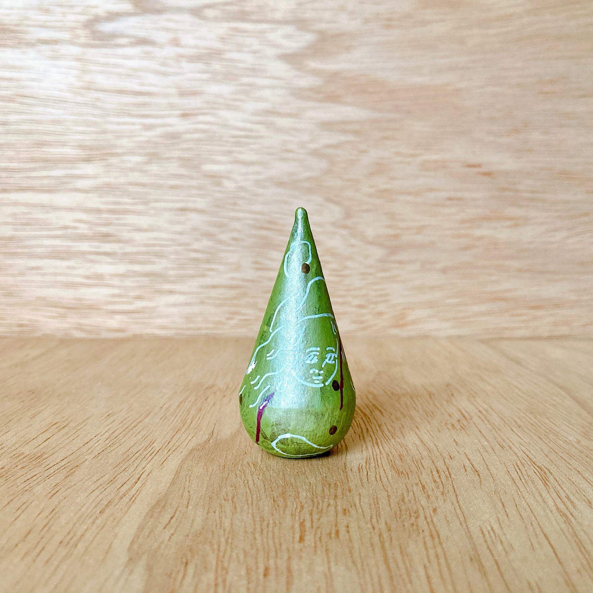 私の生まれた新潟の民芸品と、育った東京の民芸品を今のわたしの表現で描いてみるという試みです。新潟の三角だるまは「七転び八起き」という願いが込められていて、東京の新民芸品としては腸をモチーフにしたもので「腸を健康に保つことで毎日を豊かに過ごせるように」という願いが込められています。ストレスがギュッと詰まった東京では、脳細胞が何億個もある腸を健康に保つことで、精神的にも安定して過ごせるということから、その形にしました。三角だるまの素地は職人さんの手によるもので、そこへ絵付させていただきました。縁起物、民芸品としてみなさんに「よいことがありますように」と願うものとして、作品にしました。